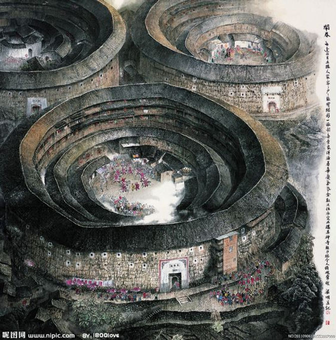 The Fujian Tulou, 福建土楼 are Chinese rural dwellings unique to the Hakka in the mountainous areas in southeastern Fujian, China. A tulou is usually a large, enclosed and fortified earth building, most commonly it is in circular configuration and organisation.